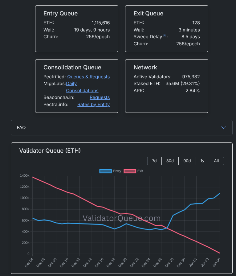 Ethereum exit queue has dropped to just 32, a 6-month low.